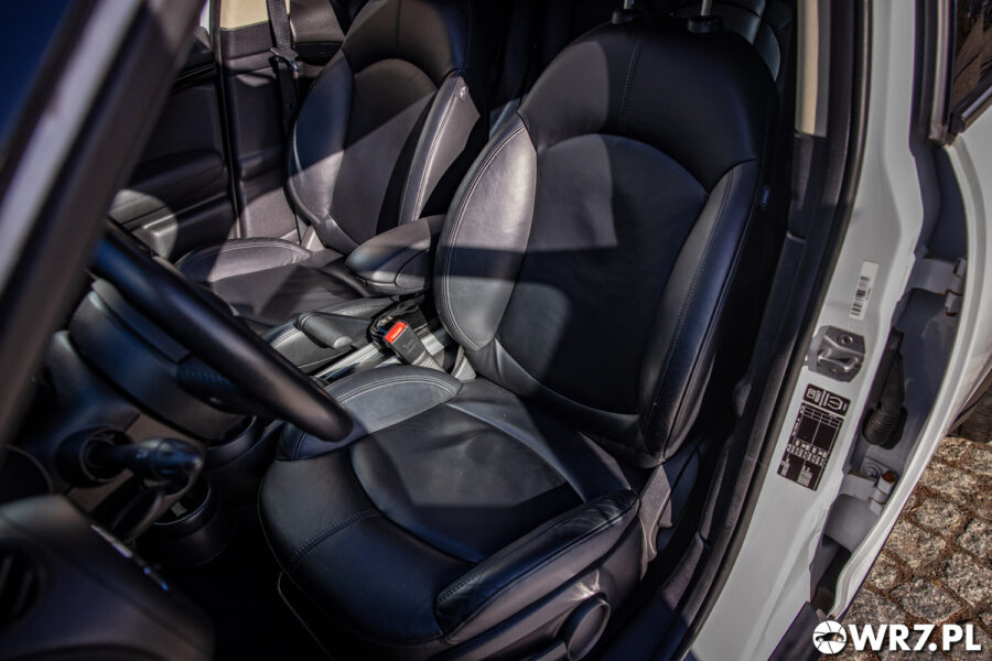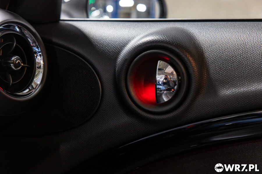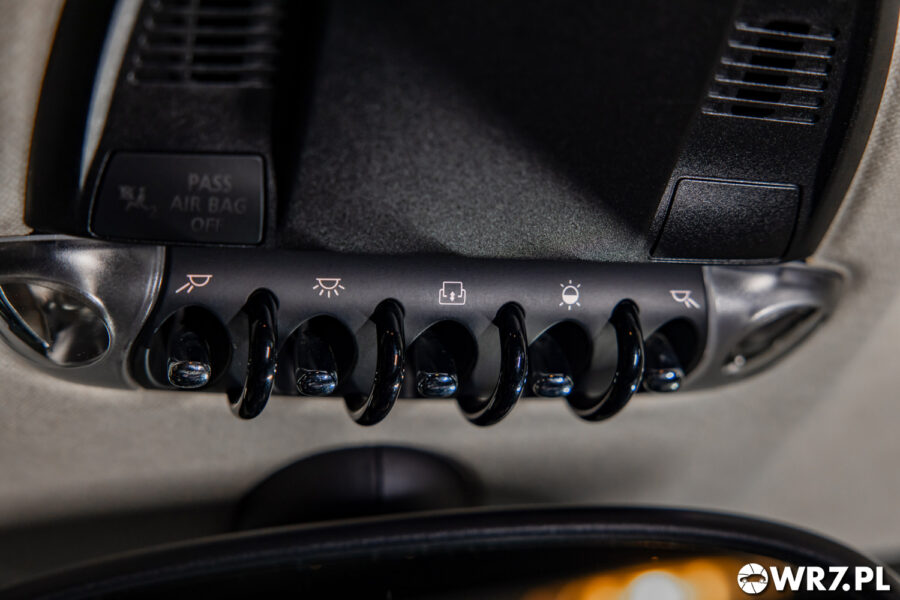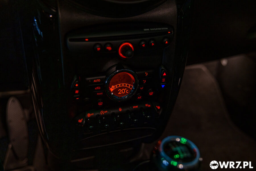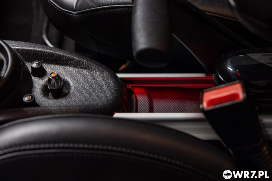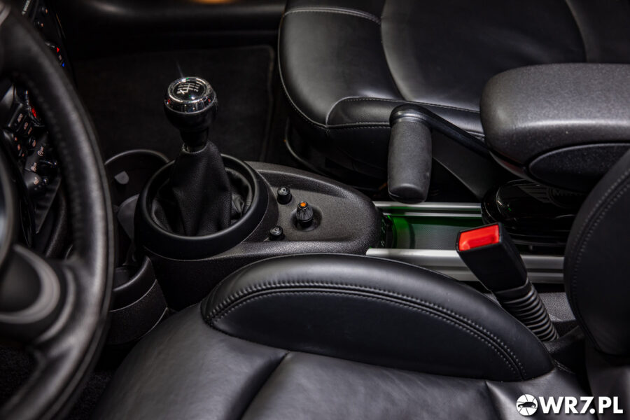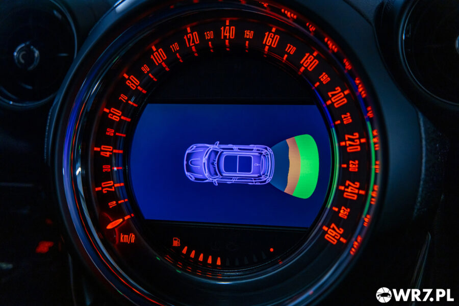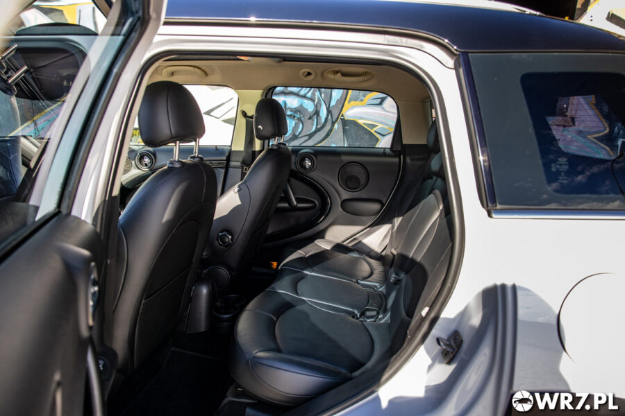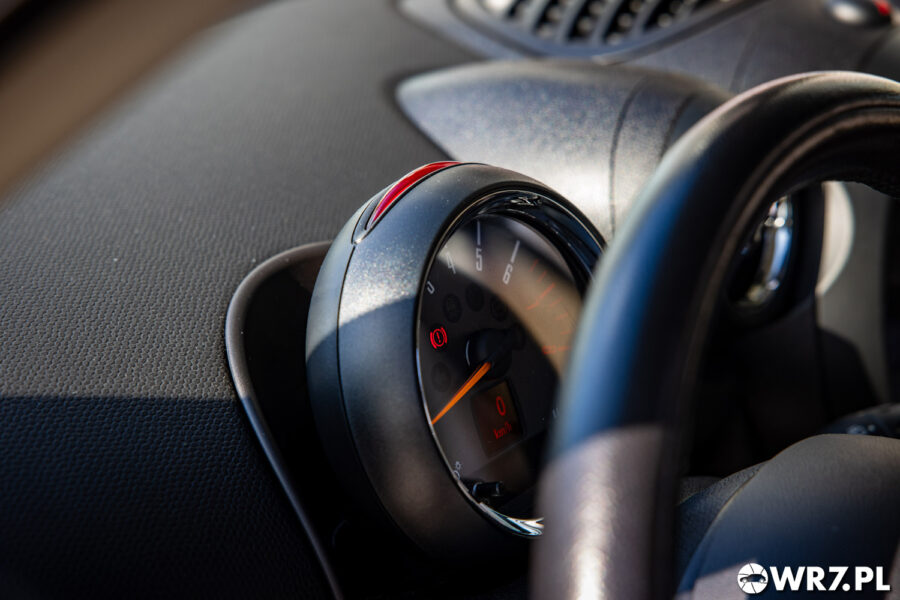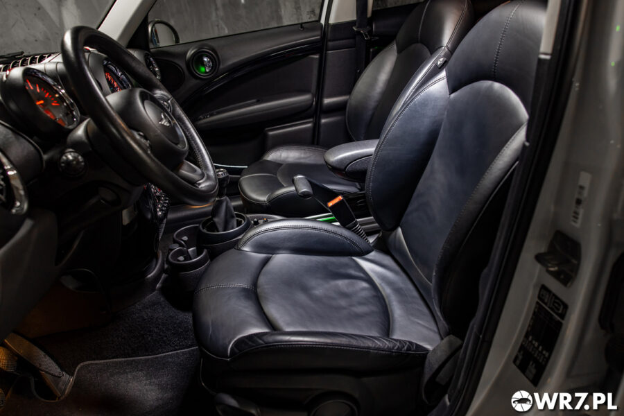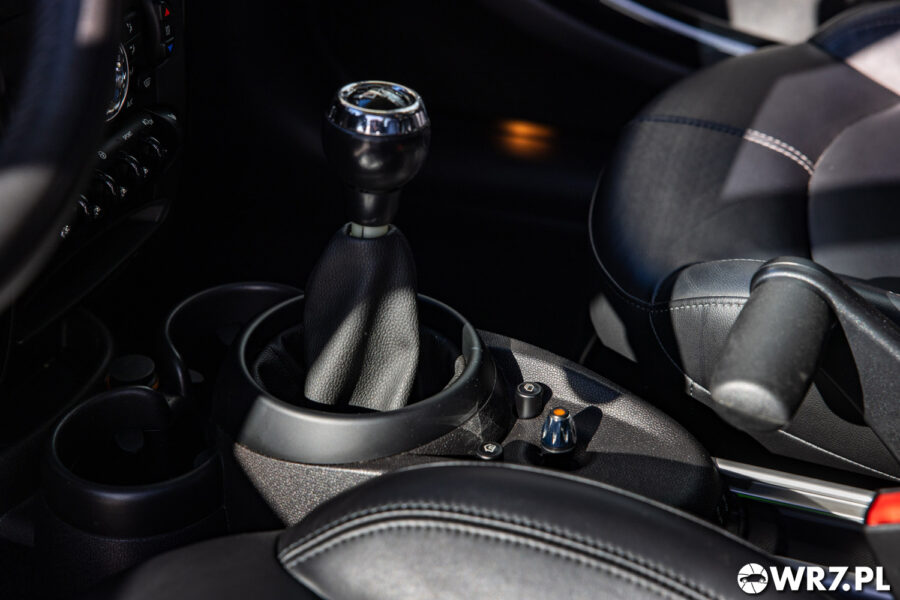 Wsiadając do Mini można się zakochać. Stylowe elementy wnętrza w stylu retro sprawiają, że Countryman zachwyca za każdym razem. Dźwignia hamulca ręcznego przypominająca samolotową manetkę mocy, chromowane przyciski sterujące i analogowy zegar powodują, że wygląd samochodu jest niepowtarzalny.