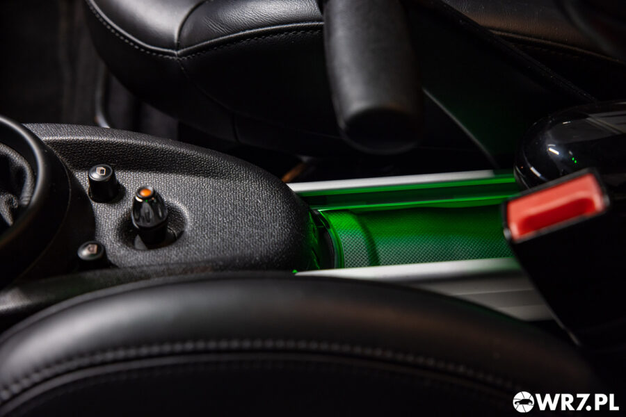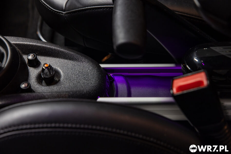 Podgrzewane skórzane fotele z pełną regulacją ustawień sprawiają, że z auta nie chce się wysiadać. O atmosferę podczas jazdy zadba dobre nagłośnienie i coś, co uwielbia każdy, kto do samochodu wsiądzie. Co to jest? Oświetlenie o zmiennej regulacji natężenia i kolorów. Wspaniała zabawa dla dzieci tych mniejszych i większych.